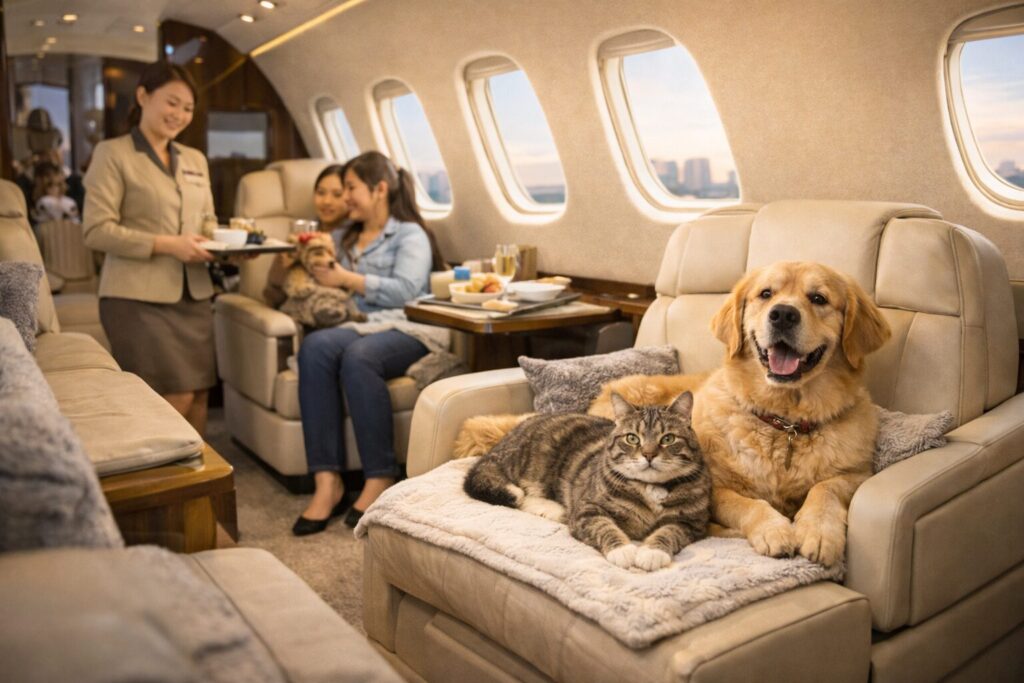 2025年12月、シンガポールを拠点とする「SingaPaw Air」が、アジア初のペット専用航空サービスとして運航を開始しました。このサービスはプライベートジェットチャーター形式で提供され、最大の特徴はペットがクレートに入ることなく、飼い主と一緒に客室で過ごせる点です。
